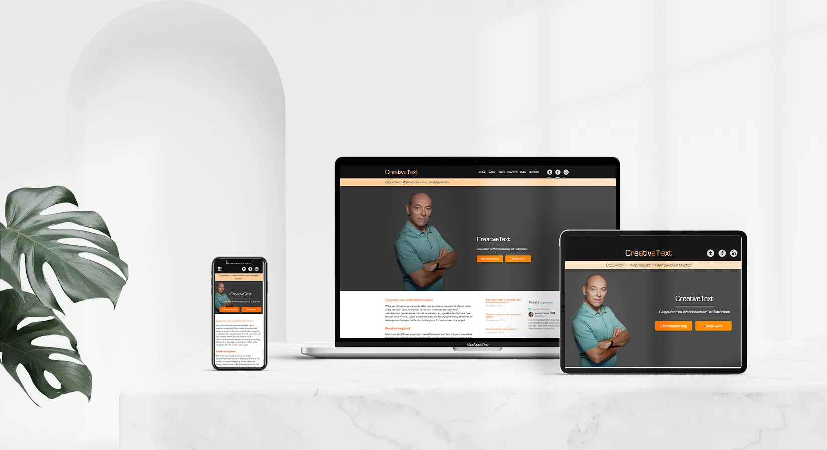De website is responsive ontworpen en gebouwd. Hiermee is Creative Text verzekerd van een uniforme weergave op alle soorten apparaten.